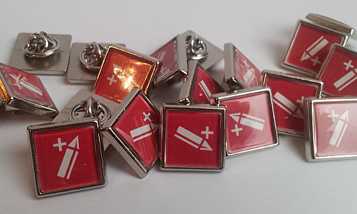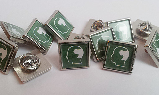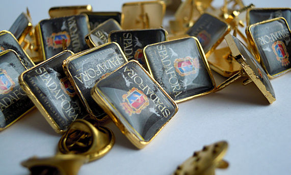 Stampiamo anche un minimo quantitativo di spille con logo.