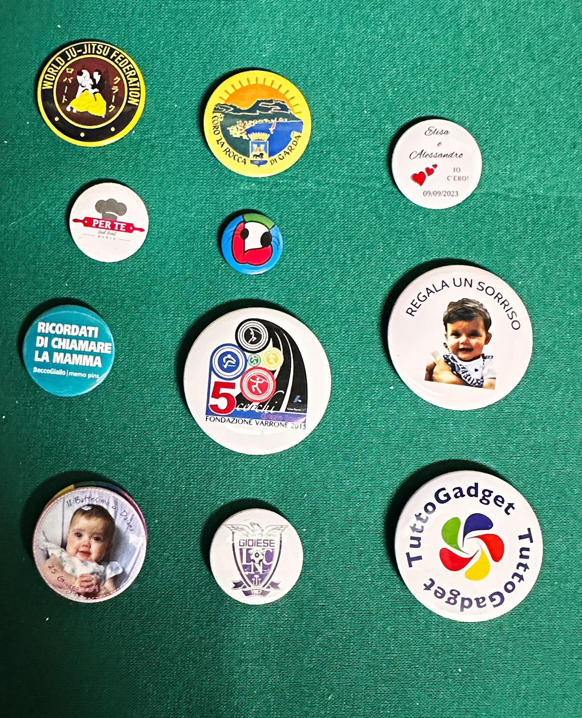 Produciamo anche spille e calamite religiose per oratori, per parrocchie, con qualsiasi immagine sacra o per eventi sportivi, per associazioni sportive o per celebrare eventi di qualsiasi tipo, possiamo produrle con foto di animali, di persone, o con qualsiasi immagine.